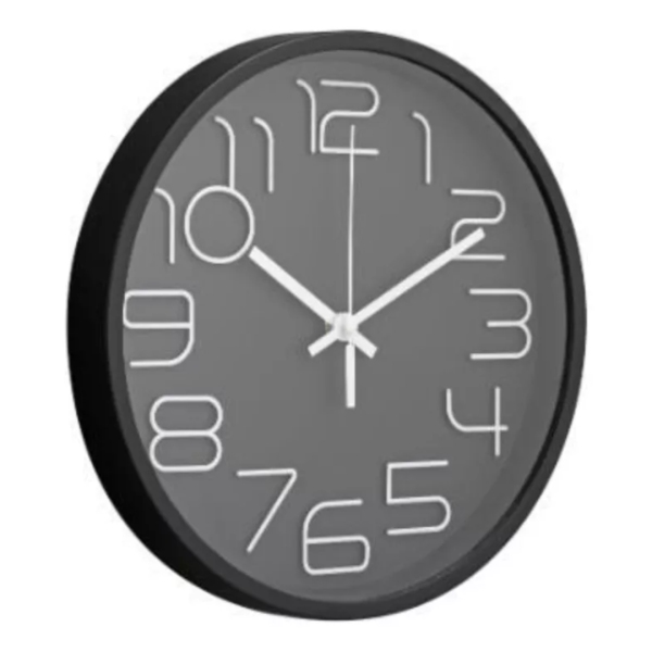 RELOJ PARED DECORATIVO NEGRO CON NUMEROS BLANCOS DE 30Cm