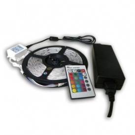 Cinta de leds de 5 metros 28X35 Trae control remoto y fuente directo a 220V. Es multicolor (leds,rojos verdes y azul). --Desde el control remoto podes manejar todas las funciones de la tira, disminuir o aumentar la intencidad del brillo, las combinaciones de colores y las distintas variedades de secuencias.NO es audioritmica.
