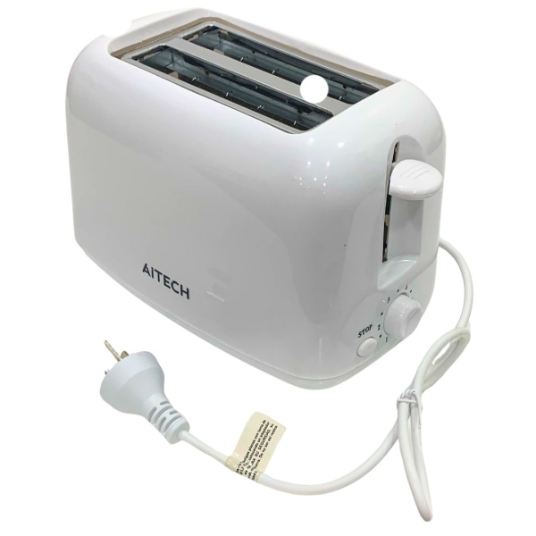 tOSTADORA ELECTRICA AITECH. 6 NIVELES DE TOSTADO PARA 2 REBANADAS DE PAN. TEMPERATURA ESTABLE. RANURAS ANCHAS. BOTON DE STOP. CUERPO DE ACERO