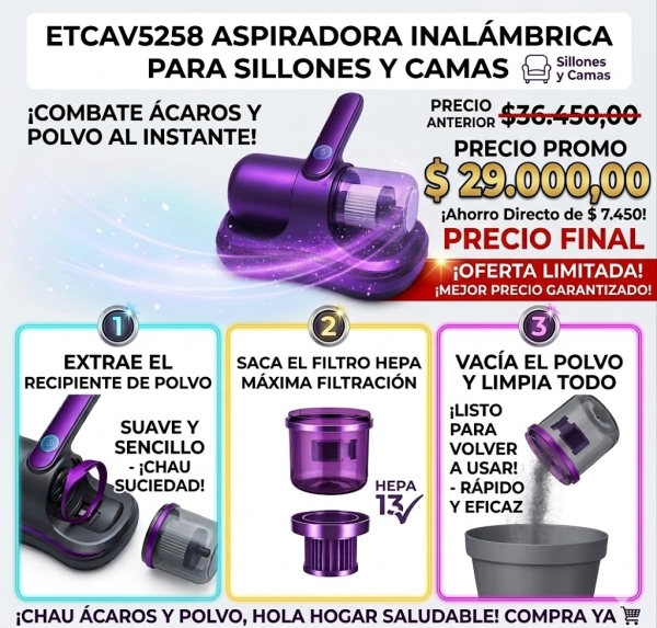 ASPIRADORA INALAMBRICA PARA SILLONES - CAMAS - ETC. (PROMO)