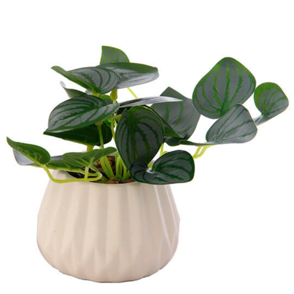 Dale un toque natural y moderno a tus espacios sin preocuparte por el riego ni los cuidados. Nuestra planta artificial en maceta es ideal para decorar salas, oficinas, dormitorios, baños o cualquier rincón que necesite un detalle fresco y elegante. Características: Altura: 31 cm - Diámetro maceta: 9 cm Material: hojas sintéticas de alta calidad con aspecto realista Base con piedras decorativas