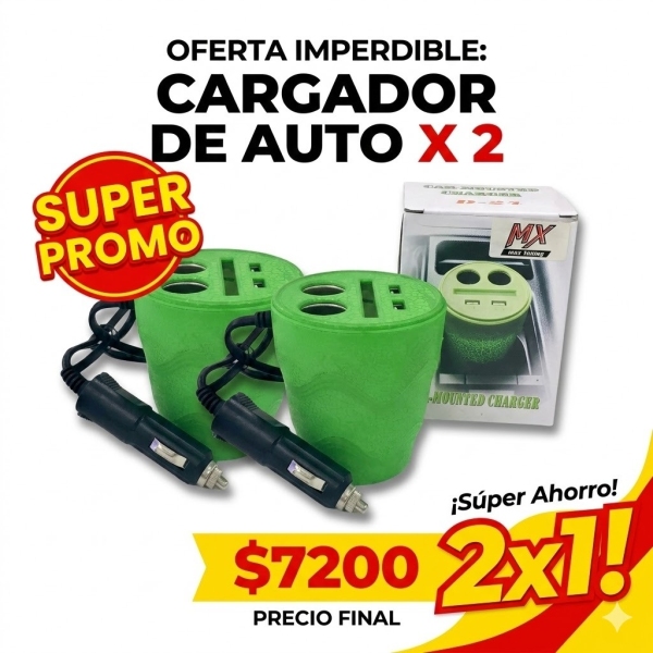 VASO CARGADOR 2 USB + 2 TOMAS 12 VOL P/ VEHICULOS