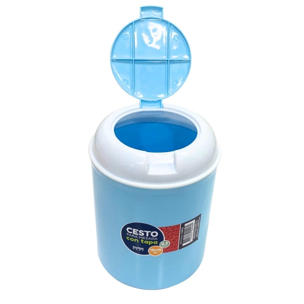 CESTO DE MESADA REDONDO CON TAPA VAIVEN 15 x 19