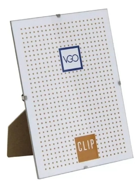 Portarretratos con 2 barras chatas de plástico. Para apoyar o colgar, horizontal o vertical.