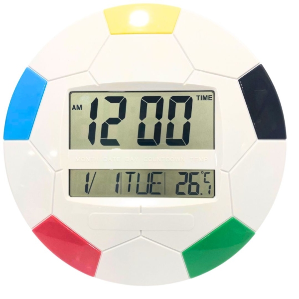 RELOJ PARED O REPISA - PELOTA DE FUTBOL - DIGITAL - 26CM